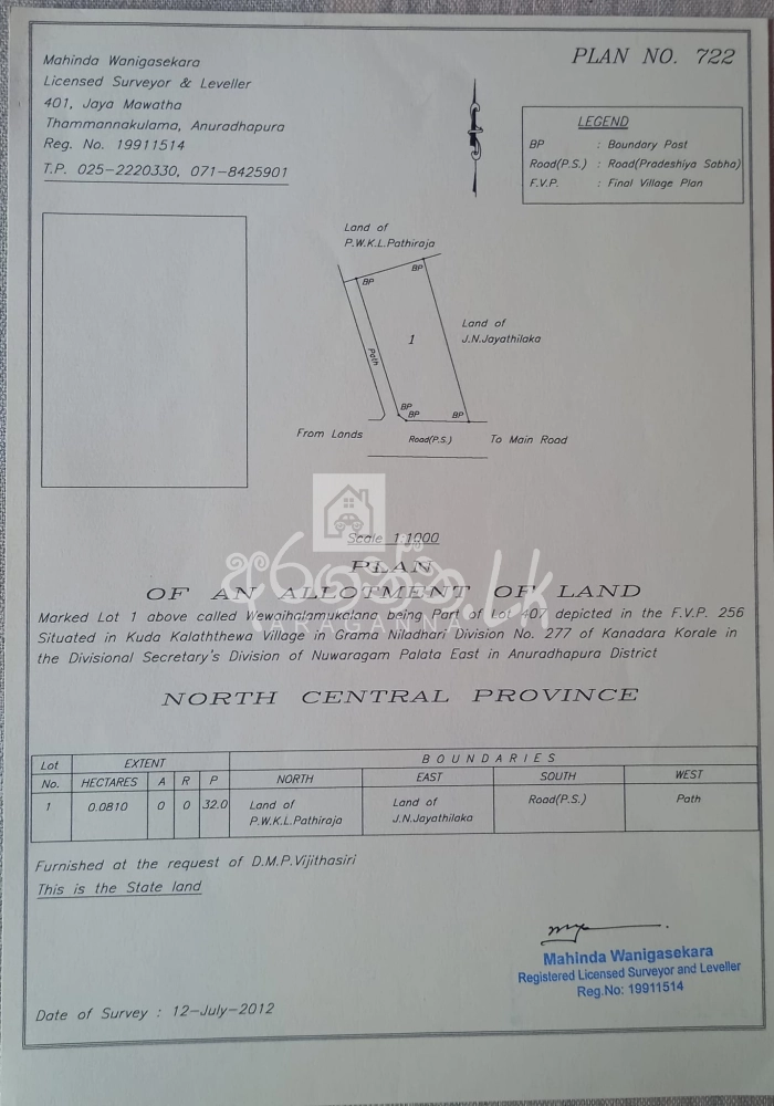 අනුරාධපුර / අනුරාධපුර ඉඩමක් විකිණීමට ( දේපල අංකය 05 -3914)