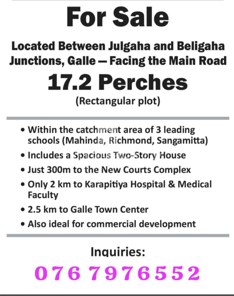 ගාල්ල - පින්නදූවෙන් අගනා ඉඩමක් විකිණිමට